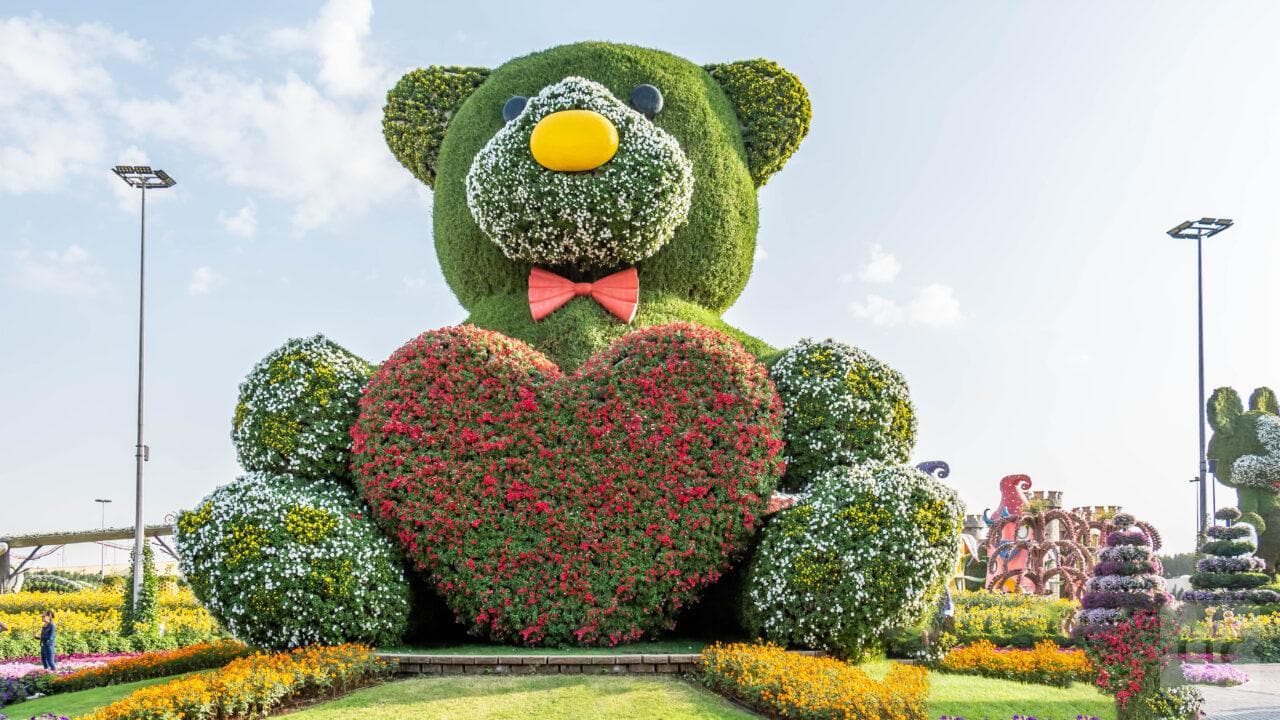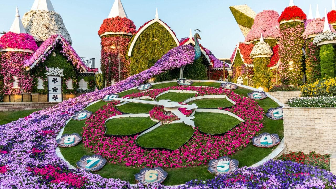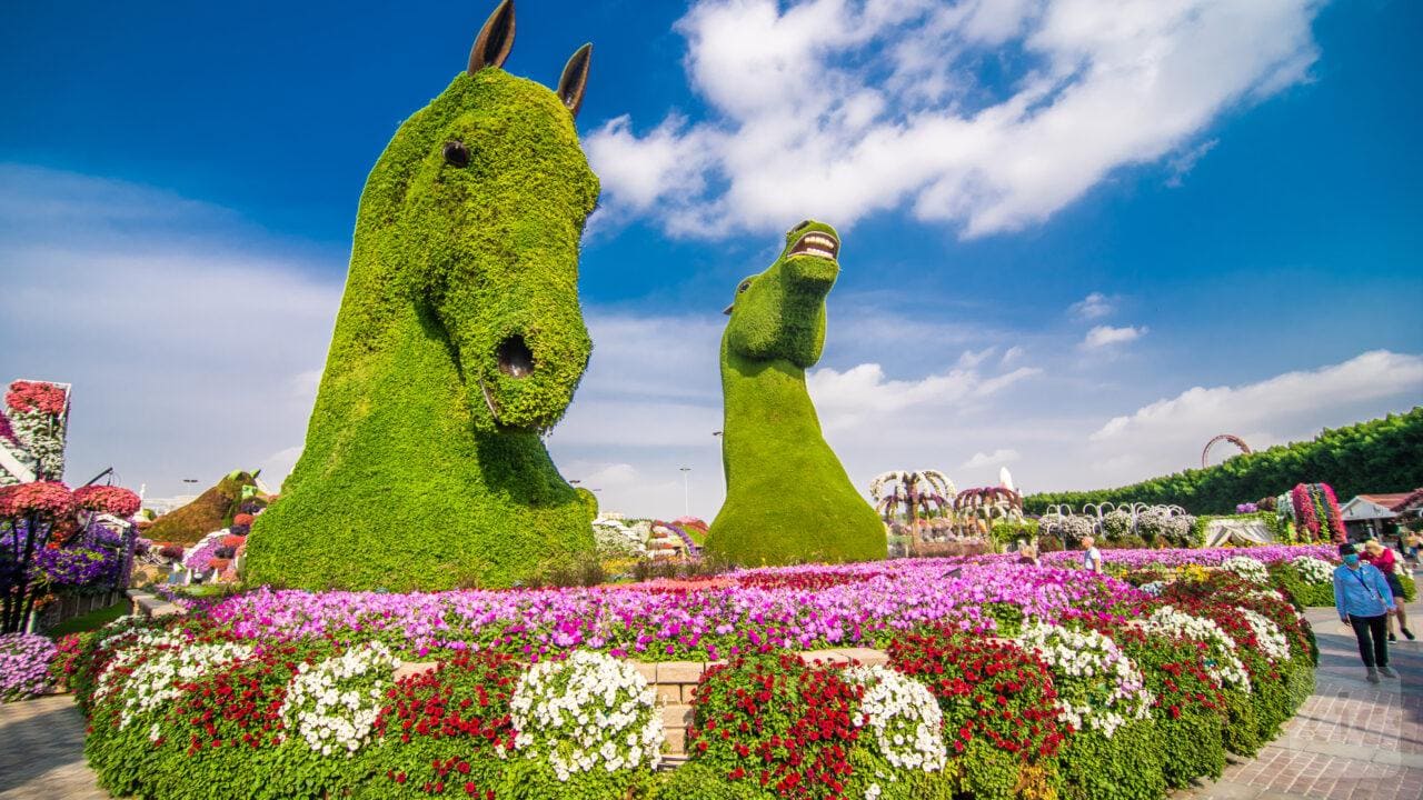 הגן הוא ללא ספק אחד האטרקציות המרהיבות ביותר בדובאי. אינספור דגמים עצומים העשויים מפרחים בלבד ובהם כפר מלא בתים פרחוניים, טירה, מגוון דמויות וחיות, כפר דרדסים ואפילו מטוס איירבוס A380 – העיניים שלכם (והמצלמה), לא יוכלו לנוח לרגע.