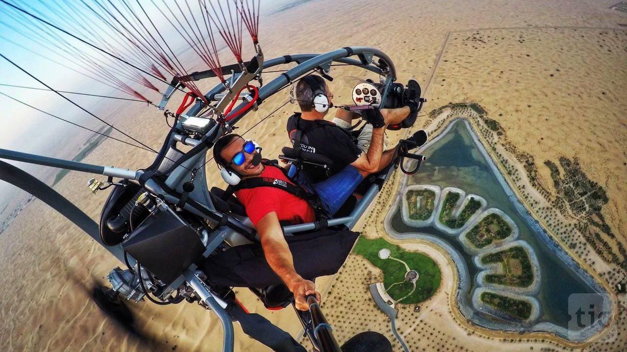 צאו לתצפית ממעוף הציפור על הנוף המדברי של דובאי בטיסה מרגשת במצנח רחיפה ממונע עם מדריך טנדם מנוסה, דרך הספק המורשה היחיד של המדינה להרפתקה זו.