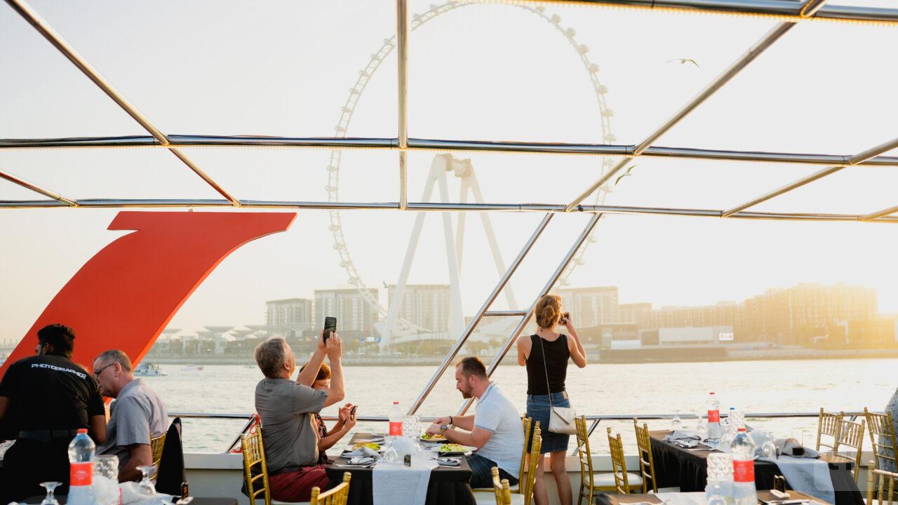מסלול השייט: מרינה דובאי ⬅️ גלגל הענק ⬅️ JBR ⬅️ השקפה על אי הדקלים ⬅️ מפרץ דובאי.